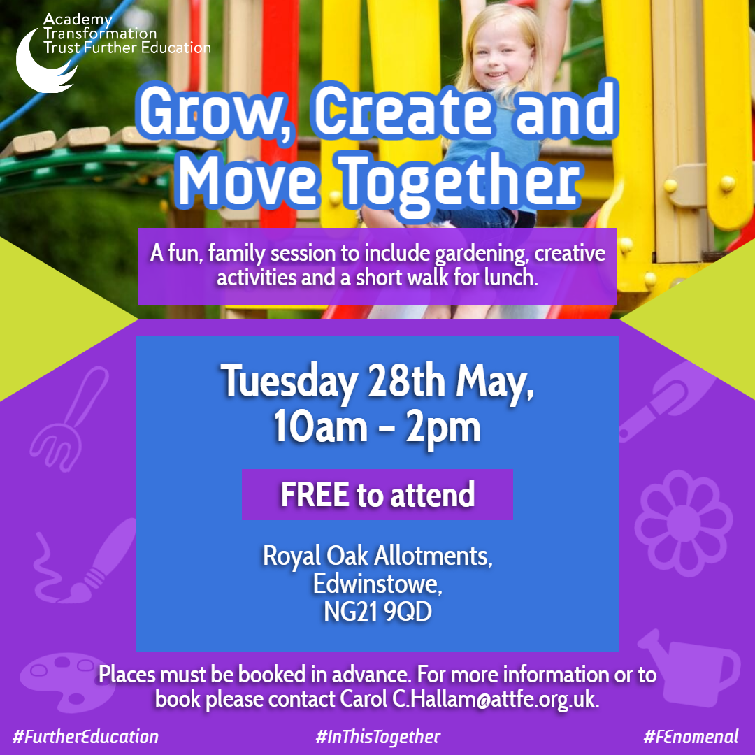 This is free to attend and will take place on Tuesday 28th May from 10am – 2pm at the Royal Oak Allotments, Edwinstowe.