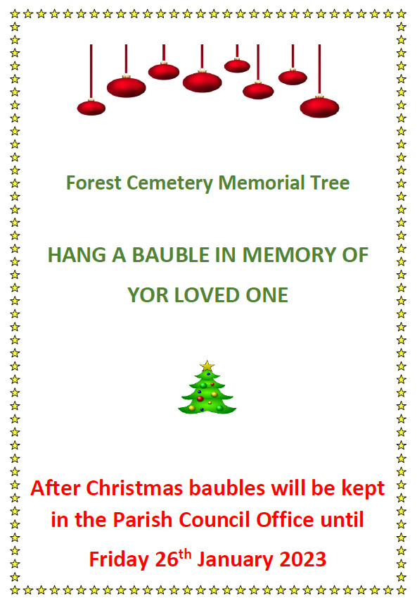 After Christmas baubles will be kept in the Parish Council Office until Friday 26th January 2024.