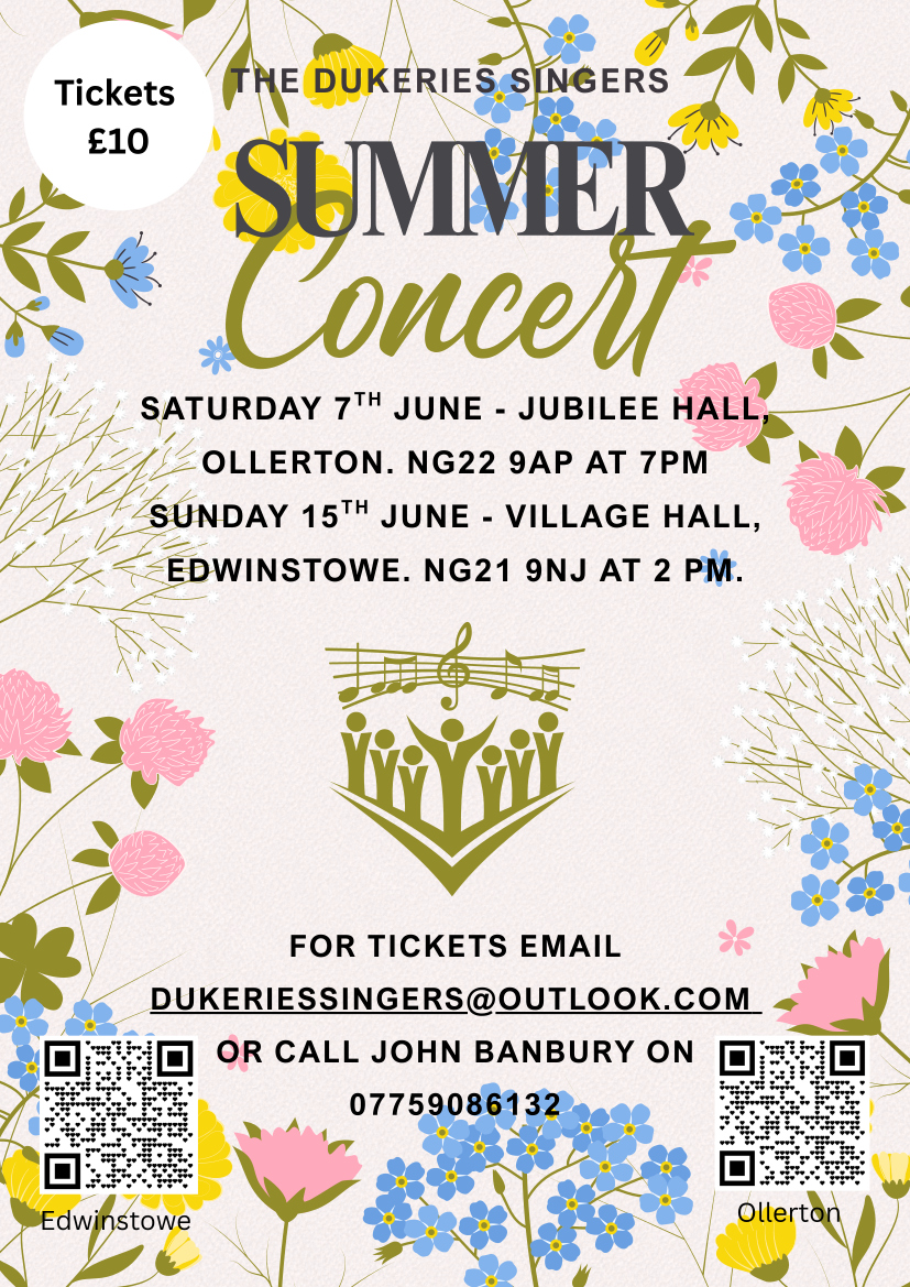 Join us for an enchanting evening of music and community at The Dukeries Singers Summer Concert. We have two wonderful performances lined up: